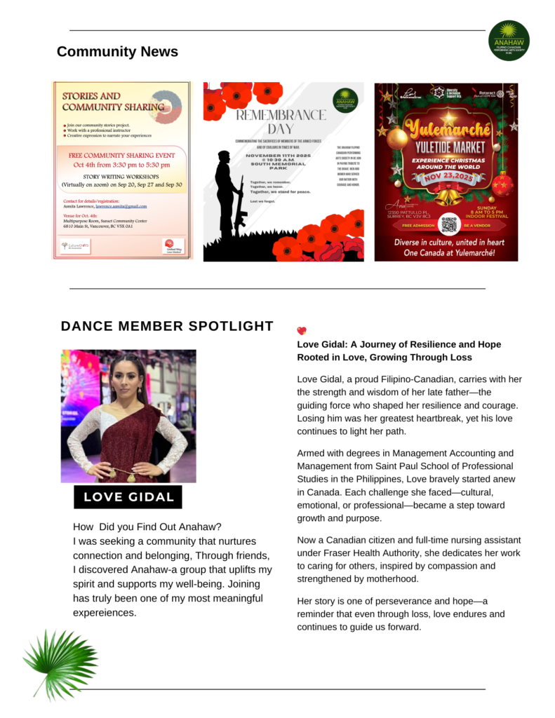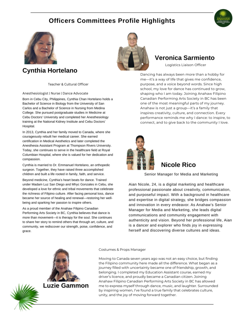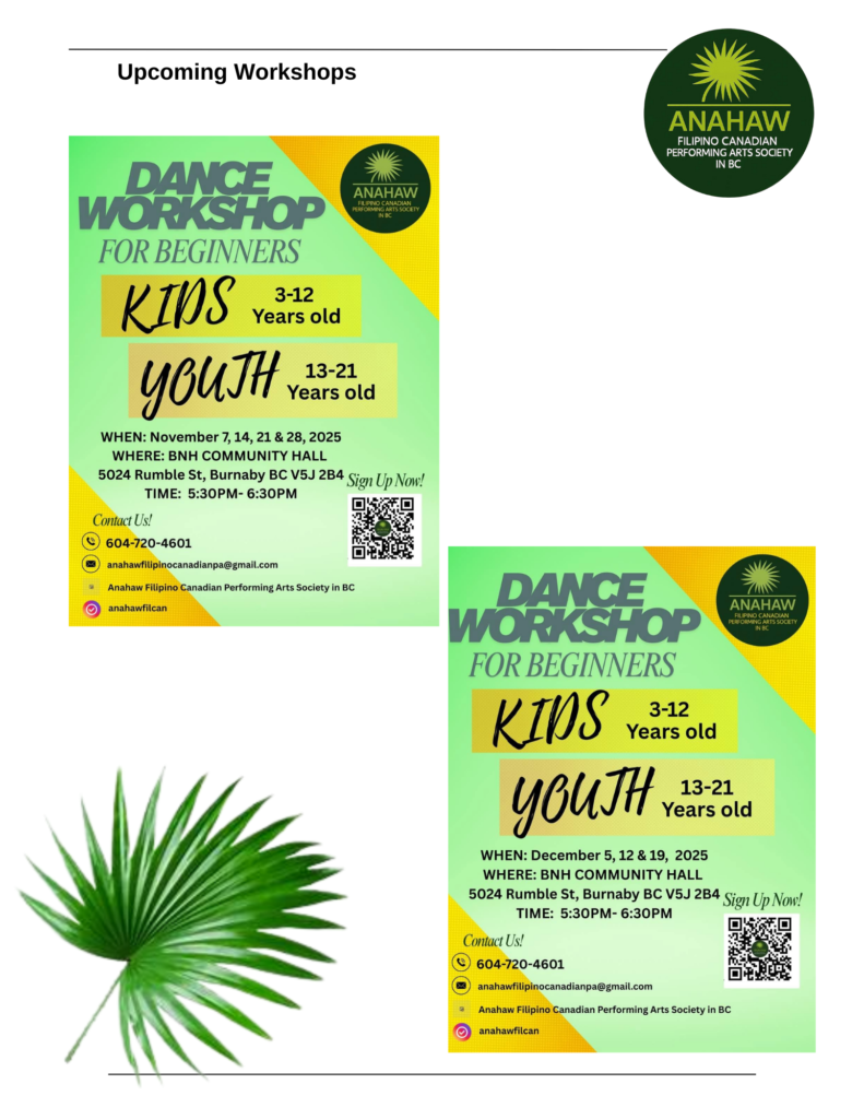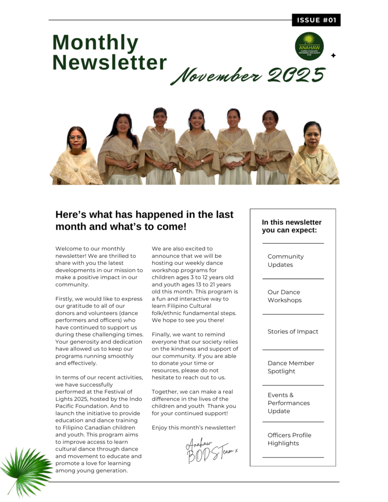 Anahaw Filipino Canadian Performing Arts Society in BC is a cultural dance group dedicated to celebrating and sharing the vibrant traditions of Filipino Culture.