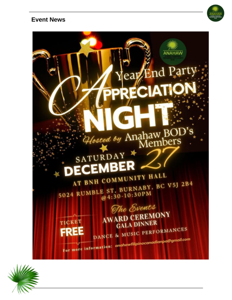 You’re invited! Join us for the Oath-Taking Ceremony, Dinner & Dance hosted by Anahaw Filipino Canadian Performing Arts Society in BC!